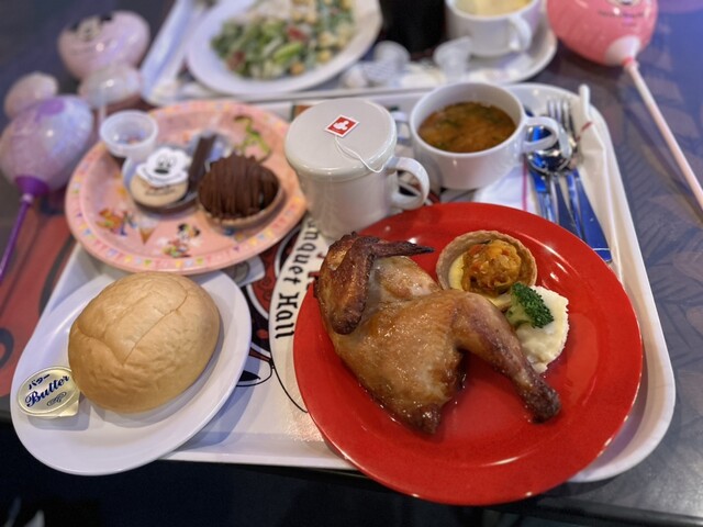 広々とした店内のバンケットホール。店内はディズニー1の可愛いご飯屋さん。