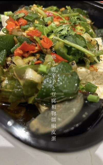 ピータンと焼き唐辛子と豆腐和物 擂椒皮蛋豆腐1,380円