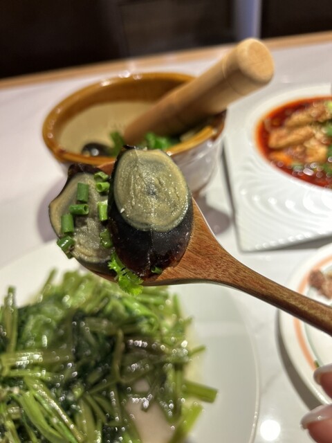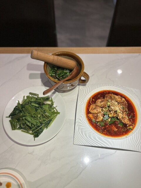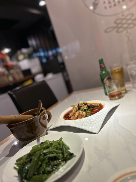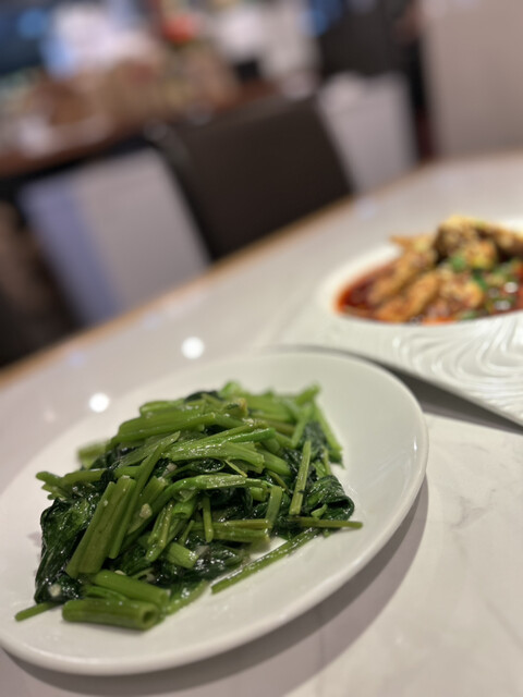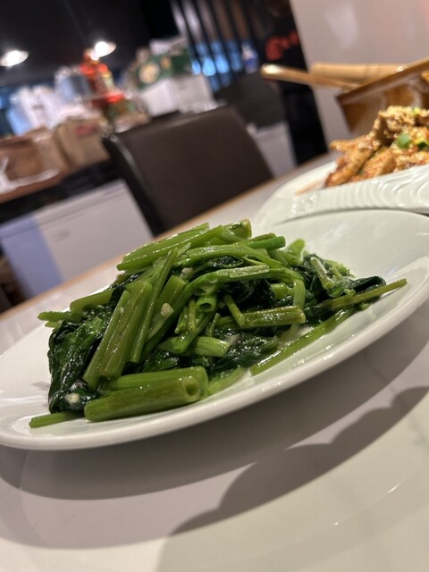 空芯菜炒めは上品な味付けがお口の中に広がり、シャキシャキとした食感と、良い意味でヌルっとした食感の両方を感じられてこちらも大変美味。