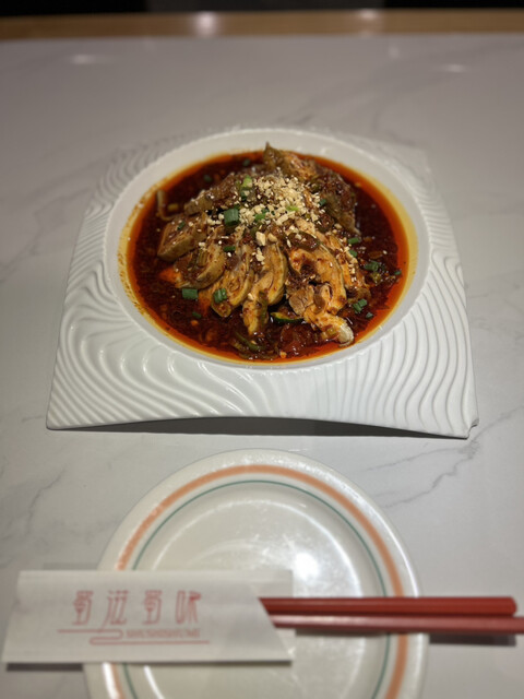 やはり好きだ。青唐辛子とパクチー、他は何の香辛料か分からないけどピータンのまったりした風合いと相まってかなり好みです。もう少し青唐辛子が入っていても個人的は良いかな。辛さと痺れがもう少し欲しいな。次回は店員さんに痺辛を調節できるか聞いてみようと思います。あ、注文するタッチパネルの下にサービスと言う項目があるのに帰宅して撮った写真を見ていて気づいたので、もしかしたらそこにあるかもです。