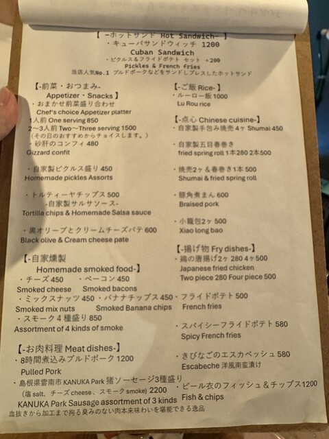 おつまみは、前菜はもちろん、しゅうまい、小籠包、フィッシュ&チップスなどどれも凝っててとても美味しいです。