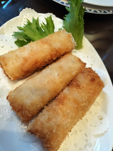 帆立きしめん包み、海鮮春巻き