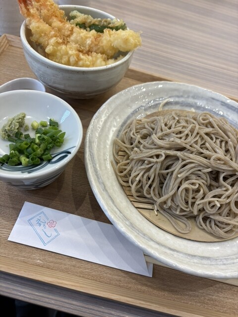 毎年恒例の今宮戎に社長さんと参拝して、その帰りに山本で用事を済ませ、お目当ての武さしさんへ!!大きな海老の天ぷらが2本ものった天丼と十割ざる蕎麦をいただきました(^^)期待通りの美味しさ!天丼の海老はぷりぷり!お蕎麦も十割ならではのお蕎麦の風味を味わいながら堪能させていただきました。めちゃくちゃ美味しかったです!!リピート確定(^^)