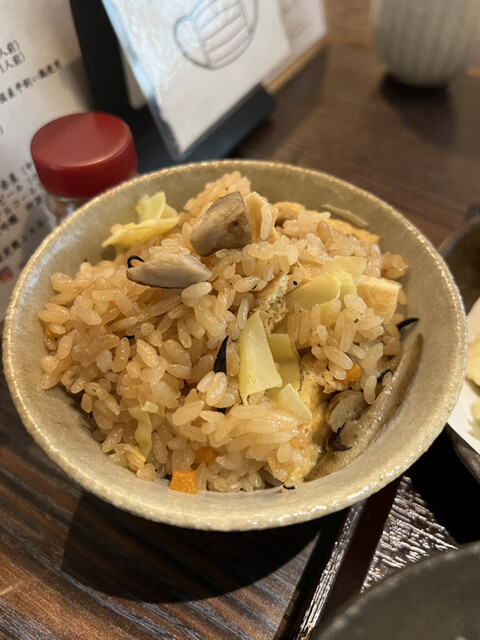 かやくごはんは醤油の香ばしさとお揚げやにんじんの甘みやひじきにごぼうも入っておりとても美味しくいただけました。