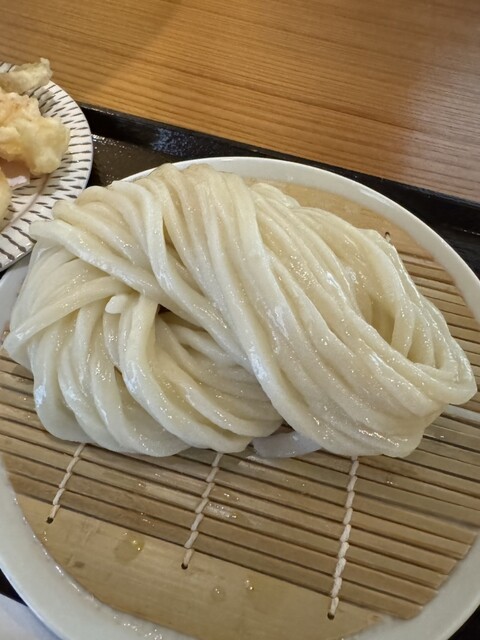 うどんは太さがあり表麺がつるりと滑らかでもっちりとしたコシがあり小麦の美味しさとつゆが程よく染みて美味しくいただけます。