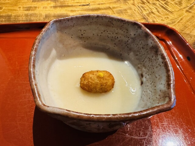 摺流し: 清涼感ある枝豆の摺流しは 良い口直しです。
