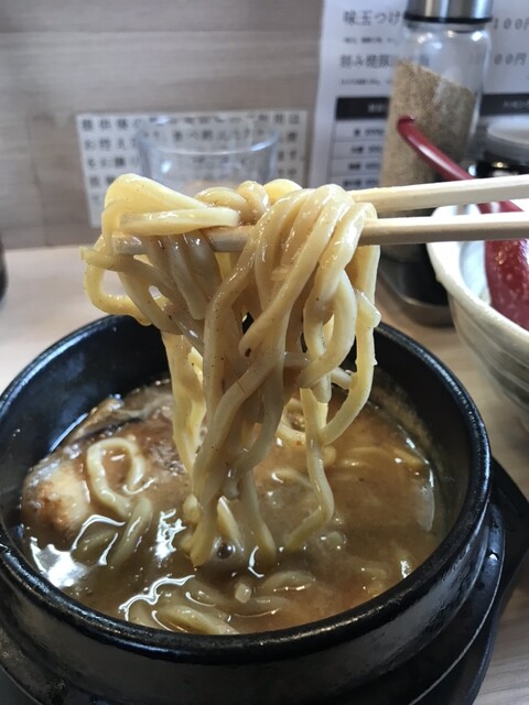 つけ汁に入れると少し柔らかくなる麺、美味い。