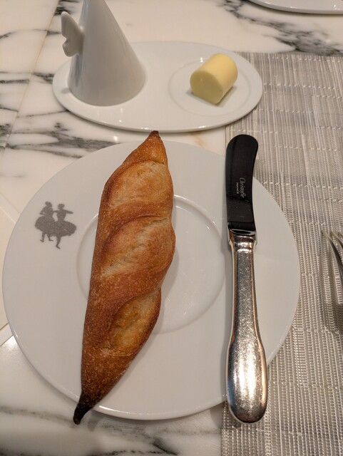 東京と京都で4店舗を経営するドミニク・ブシェ氏の旗艦店、フランス人によるフレンチ・レストランですが、日本人がフレンチに対して(一昔前に)抱いていたイメージ通りの内装・接客・料理そのままなので、日本人の抱くフレンチのイメージが正しかったのか、ブシェ氏が日本人のイメージに寄せてきたのか不思議です。