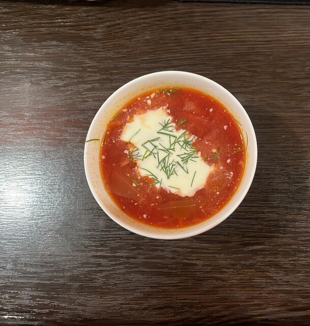 ご飯の量は普通で160gと教えてくれました。少し多いかもですが、ステーキとボルシチが美味しくてパクパク食べれてしまいました♪