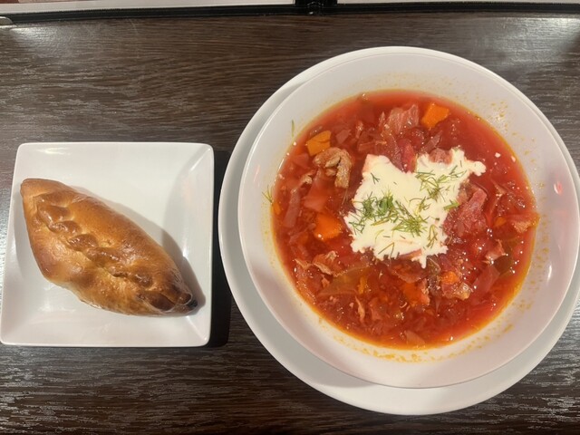 入店後は、並んでいだ人から順にオーダーをとってくれます。今日は食べてみたかったボルシチランチにしました。このボルシチランチは、すぐに売り切れてしまうんですよね〜
