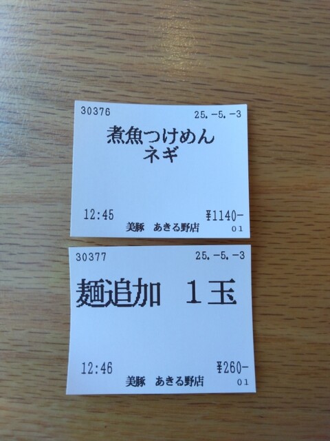 煮魚つけめん(910円)+麺追加1玉(260円)