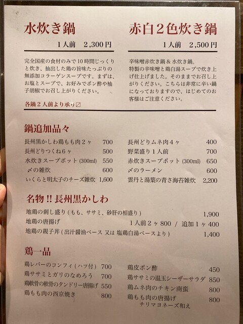 水炊きには、長州黒かしわという山口県産地鶏を使用し、柔らかくジューシーな身が特徴。