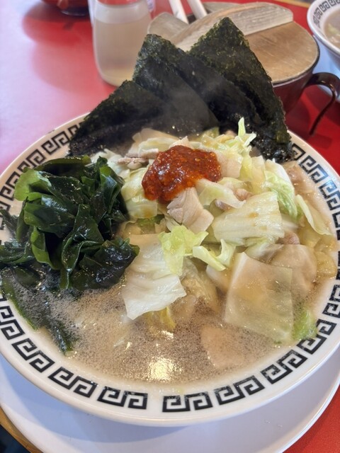 わかめ海苔両方だと思ったより磯の香りが強く、わかめだけで良かったかなと。色々トッピングしてしまいましたが、結局子どもの食べてた辛さ無しのタンメンが一番野菜とスープの旨みが感じられて好みかも?案外妻のオーダーのこんにゃく麺が美味しかったです。