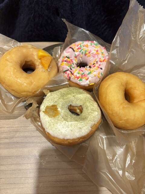 プレーン、ストロベリー、レモン、マンゴーのドーナツと月桃ラテアイスのMを購入。ストロベリー、マンゴーは完売、ピスタチオもありましたが次のお客さんで完売。ドーナツ目当てのようであれば14時ころまでに来ないと結構欠品になってしまいそうです。