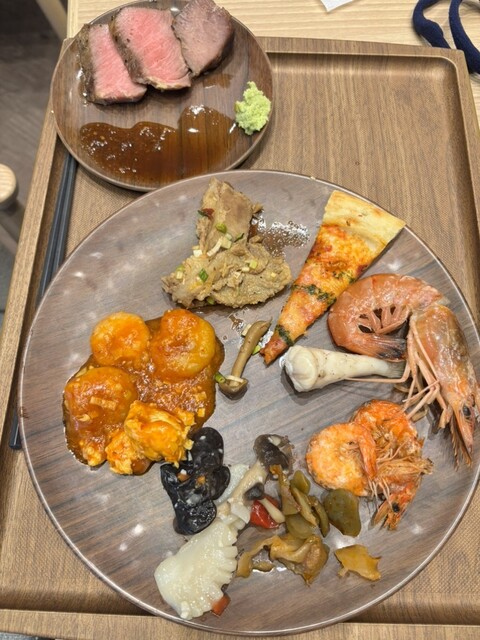ビュッフェはどれも美味しく、国内のビュッフェでは現時点で1番良かったかもしれません。海鮮が今まで食べたビュッフェの中ではもっとも美味しかったと思います。2500円で飲み放題が追加できますが、3杯程度で元が取れるので、つけるととても楽しめます。腹がどうかなるくらい飲み食いしました。