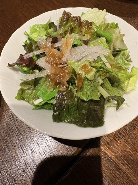 そしてお通しのサラダはトリュフ入りドレッシング。最近のトリュフブームはあんまり歓迎しないけど、これは適度な風味が醤油ベースのドレッシングとよくあっててうまい。あとで追加注文してしまったほど。