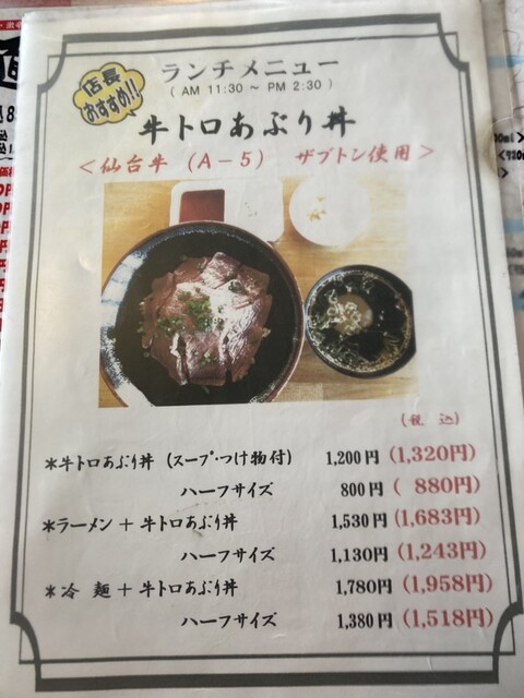 松本旅2日目、かえるまつりを見た後、松本在住の大学時代の先輩と合流。先輩のお勧めの店に妻と3人で訪問。焼肉はハツ、レバ、ギアラ、豚ガツ芯を注文。ハツは弾力があり美味しい。レバはレアで食べられるので、レバ刺しを食べているような感覚で、一番美味しかった。いつもは噛んだ後の匂いがダメで、レバを敬遠している妻も臭みが全くなく美味しいと絶賛。ギアラ、ガツ芯はコリコリしていて美味しい。牛トロあぶり丼は肉が柔らかく美味しい。盛岡冷麺は通常締めで頼むので、麺・スープ共に少なめですが、当店のものは一人前あります。麺硬めでモチモチしており、スープも深みがあり、とても美味しい。私は中辛で丁度いい塩梅でしたが、先輩の大辛を少し食べさせて頂きましたが、とても辛かったです。どれを食べても美味しかったので、大満足でした。先輩曰く、冷麺は早めに行かないと売り切れるそうですので、ご注意下さい。