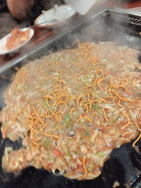 久しぶりにもんじゃ。名店であるこちらを予約して、訪問すると長蛇の列にビックリ。直ぐに着席して椅子下ビニールに荷物を入れて、オーダー。鉄板焼きはアスパラ、ソーセージ、イカなど、箸休めはキムチに塩ダレキャベツ。ビールが進み、明太モチもんじゃ、近藤玉天、豚肉焼きそば等など。老舗はどれも絶品で大満足です。