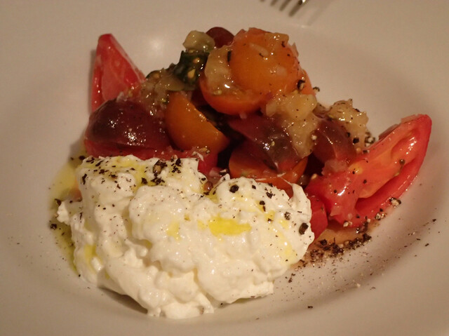 完熟トマト、ブッラータチーズ、柑橘のサラダ