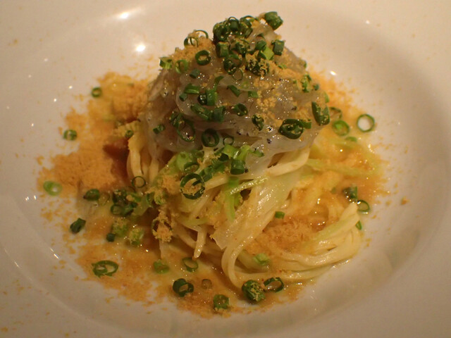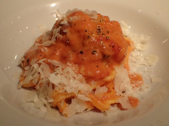 〆パスタにオススメしてもらった一品はトマトカルボナーラな一品。完熟トマトの味がしっかりしているイタリアンらしいパスタでした。