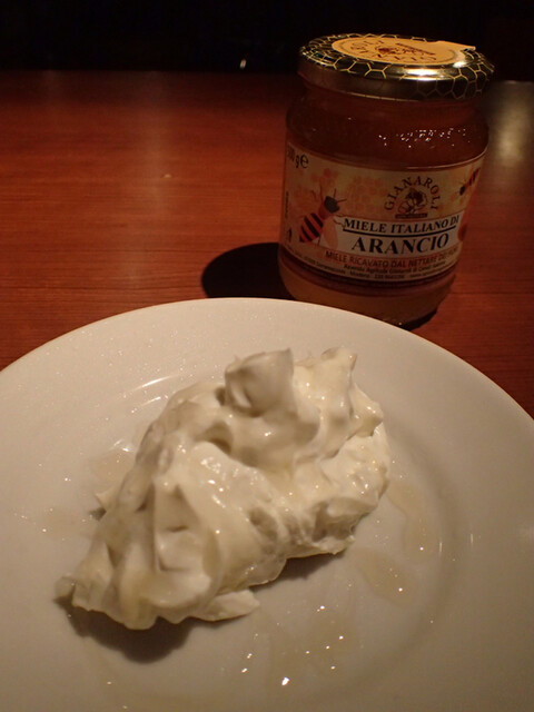 福岡の大牟田市マスカルポーネに蜂蜜と塩をかけたもの。一つ一つの味がきちんとして素材の良さが際立つシンプルなデザート