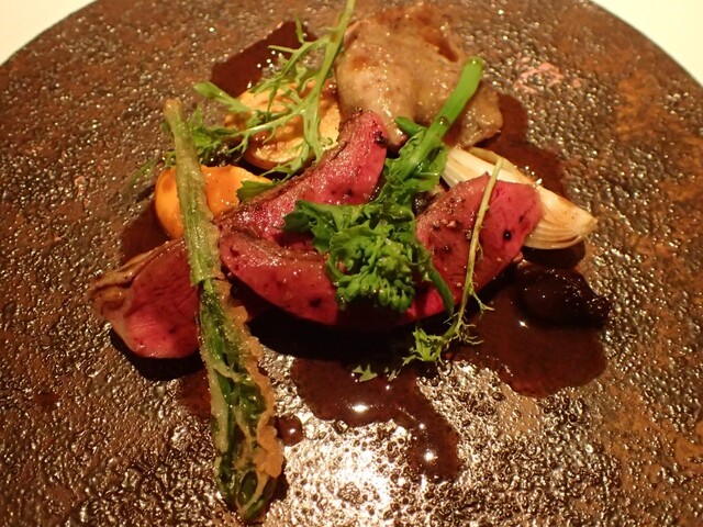 鳩といえばフランスのものがやはり美味しいと言われているんだそうですが、フランスの鳩を北海道で飼育するプロジェクトがあり、その鳩を頂きました。数が少なく、今週3羽ゲットできたうちの一羽(一皿半羽)を私たちが頂きました。胸肉ともも肉どちらも火の入り加減が素晴らしく本当に美味しい♡ジュドピジョンという鳩の骨から取ったスープで作ったソース。フルーティな黒ニンニクのソースをつけて頂きます♡うんまぁ♡