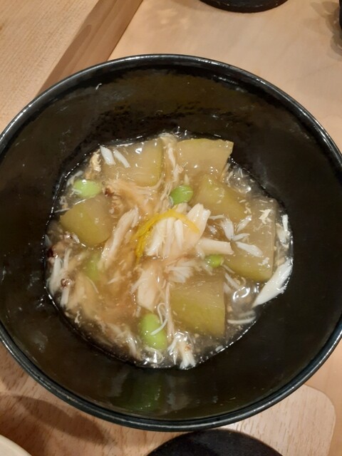 どれも絶品ばかりでしたが、特に北寄貝の甘くシャクシャクした歯触りとトロトロの冬瓜と濃厚な旨味のわたりがにのあんかけが最高でした。