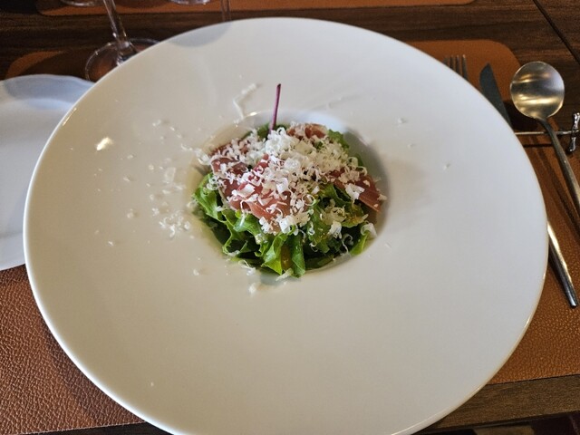 【前菜】生ハムとパルミジャーノレッジャーノのベビーリーフサラダ