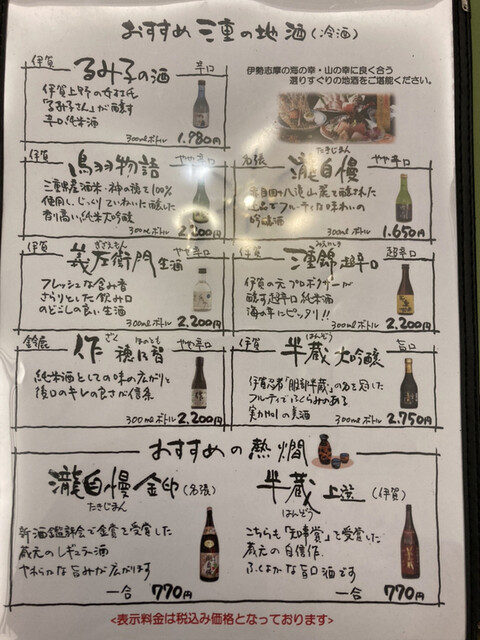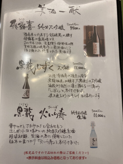 僕は生ビール、両親は日本酒(作・而今)をチョイス