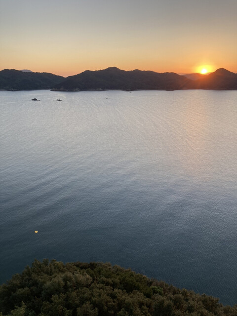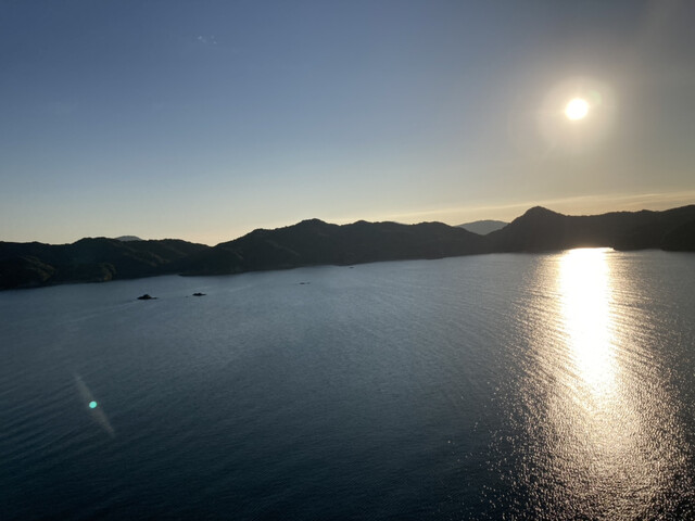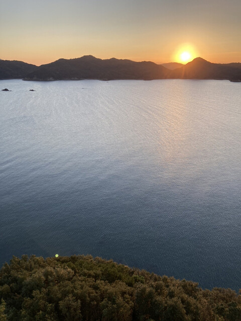 しばらく眺めていると海を挟んだ反対側、山の向こうから太陽が昇ってきました