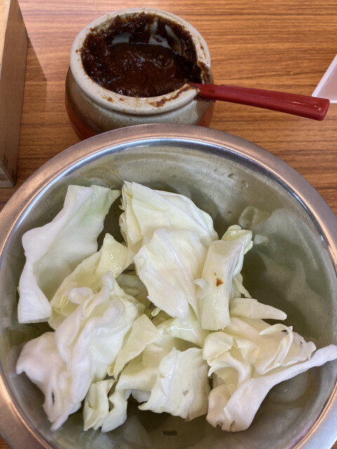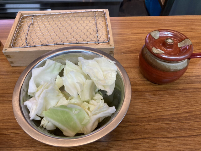 仕方ない、揃うまでお通しのキャベツでも食べて待ちますか