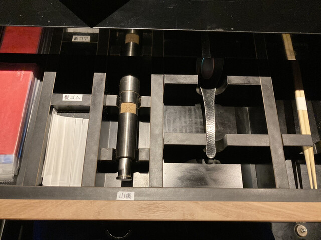 引き出しに箸やレンゲ、お手拭きが入ってます