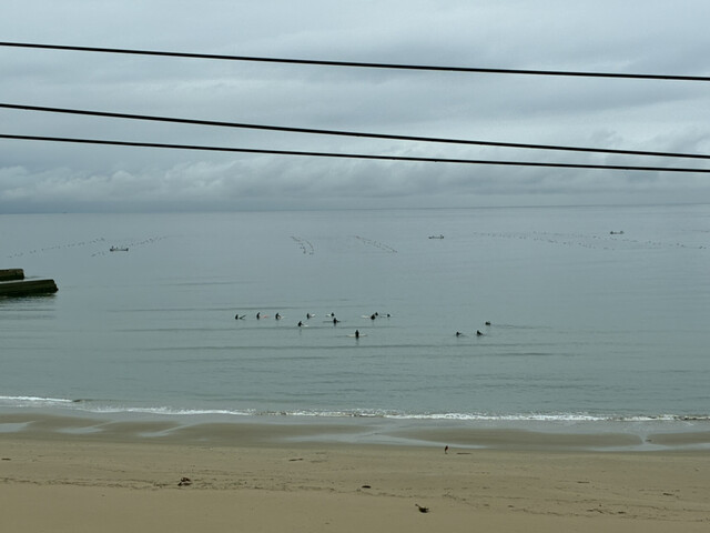 さて、窓から外を見てみると目の前の海で何人かの人がサーフィンをやっていました