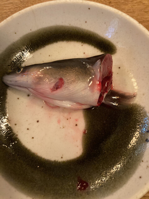「天然物のぶったぎりです、頭と尻尾で味わいがかわるので」と今の今まで生きていた、活きのいい鰻の頭と尻尾!!