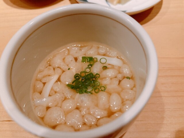 穴子の稚魚 のれそれを鮨尚充特製どん兵衛風に