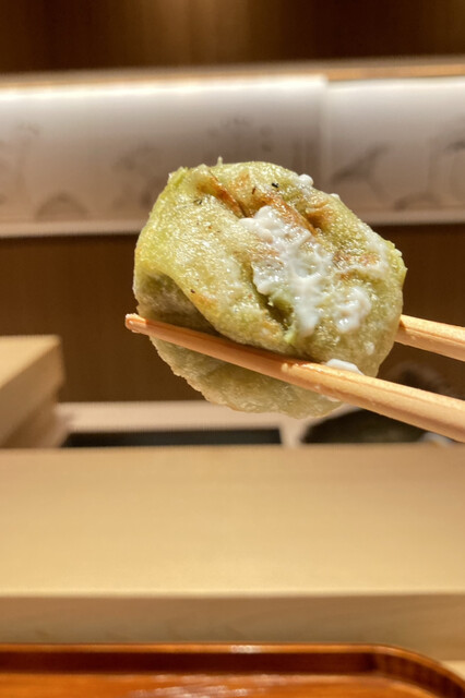 木の芽を入れてあり二つの香りも味わえる。蕗のとうのお出汁が効いており、非常に美味しい。