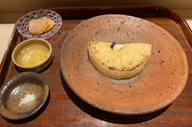 このこ。海鼠の塩漬を新鮮な鯛にあん掛け、とても美味しい。