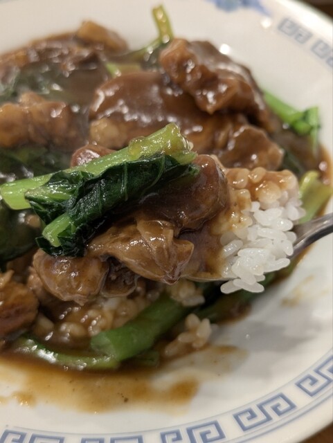 ◯角煮飯も見た目よりあっさり上品な味わいであんの味が絶品!!角煮とよく絡んで旨い!!