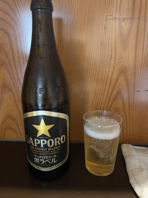 ビール中瓶500円。マグロ中おち(のり付き)400円。ミンクくじら中おち500円。ホッピー黒350円。ホッピーなか250円。
