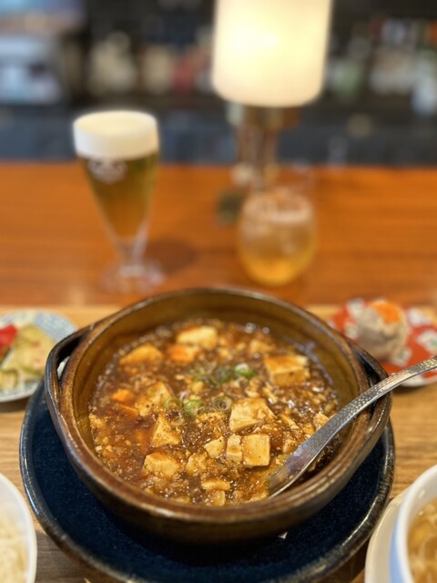 麻婆豆腐と一緒に頂きたいランチビールが400円とお得なのも嬉しい♥️