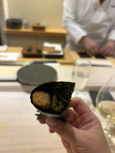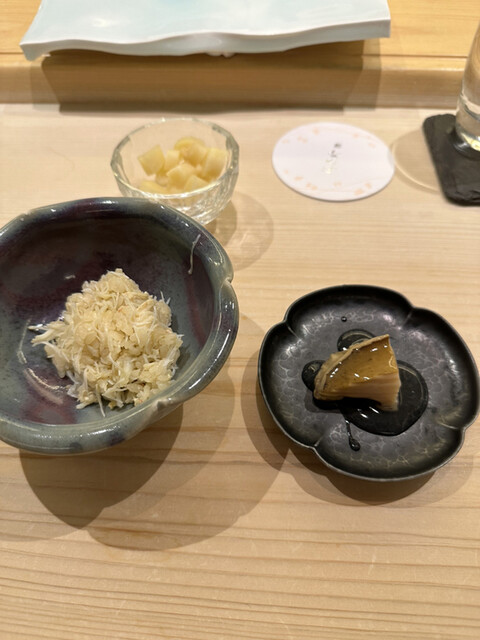 縞海老の濃厚な味噌、鰆のクリーミーな舌触り、大トロの蛇腹のとろける旨み。