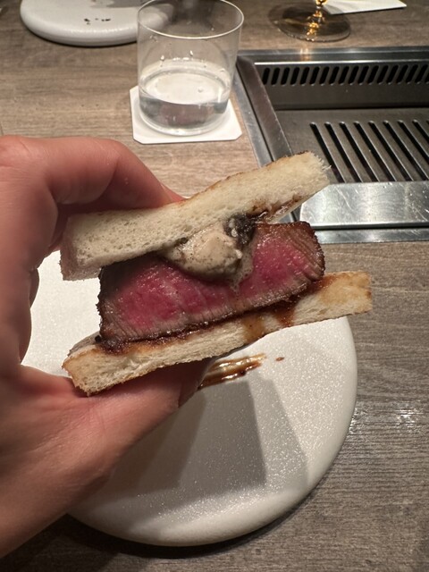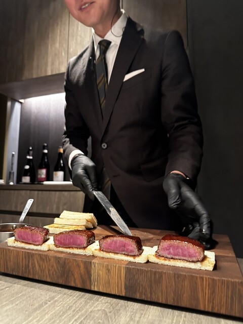 超希少部位シャトーブリアンをカツサンドに。 お肉はふんわりやわらかくカツとパンのサクッとした食感、トリュフの芳醇な香りを楽しめる一皿。