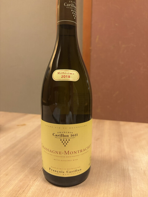 ワインはFrancois Carillon Puligny Montrachet 1er Cru Champs Gain 2018を