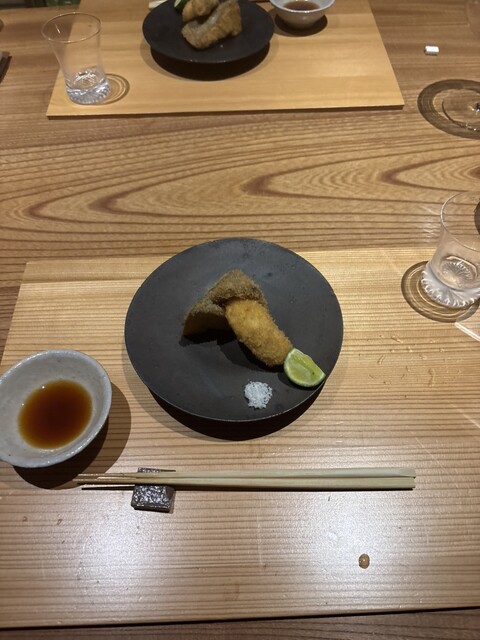 とらふぐのお刺身や白和えの後は、何と間人蟹を使ったおやきとクリームコロッケが出てきました!笑どちらも間違いなく絶品。
