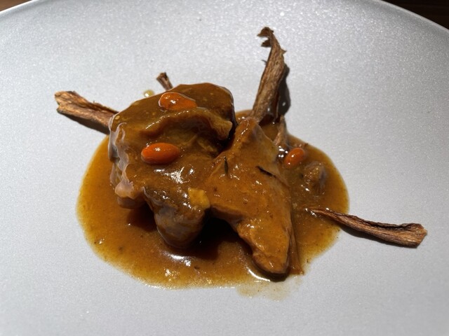時間をかけて煮込んだ和牛に、香り高い薬膳の調べを添えて。これがメインですが、ほんと美味かった。フレンチやイタリアンのような、上品さがあり、文句なしの皿でした。