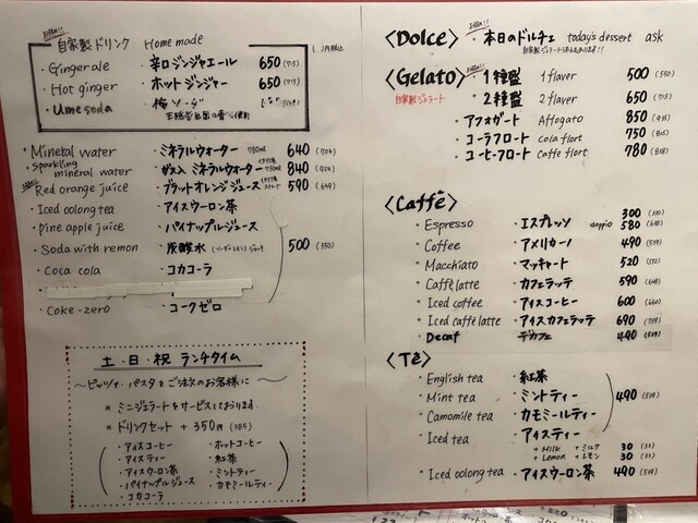 ピザはマリナーラを頼み、セットの自家製ジェラートはチョコレート味で。
