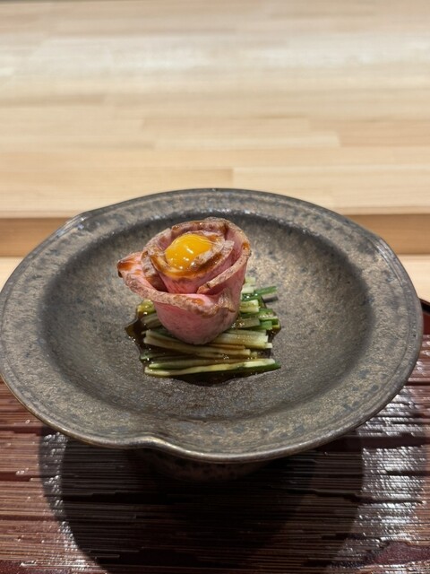 松阪牛のホルモン使用。ただたくさんホルモンが出てくるのではなく、スペシャリテの青椒肉絲やサーロインのしゃぶしゃぶ、上レバーを厚切りにカットして、揚げたレバーカツなのどバラエティーに飛んだコース内容でした!