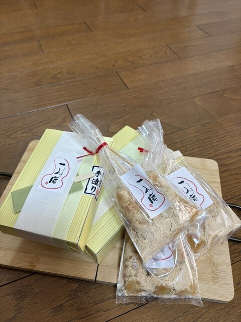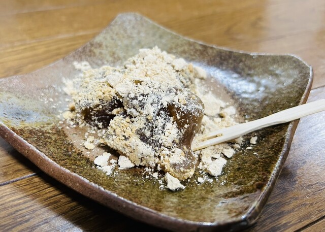 わらび餅にはポテサラみたいな追いきな粉&別添の黒みつ