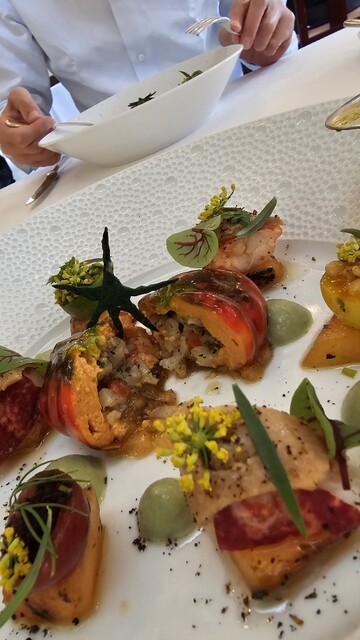 オーナーシェフ山本氏は、名古屋外国語大学フランス語学科で学び、在学中から渡仏。料理と文化を吸収し、銀座レカン、西麻布ザ・ジョージアンクラブを経て、オレキス初代料理長、2012年ラトゥーエル料理長、2015年より現職へ。その経歴は輝かしいですが、彼の料理の本質は経歴以上の広がりを持っています。