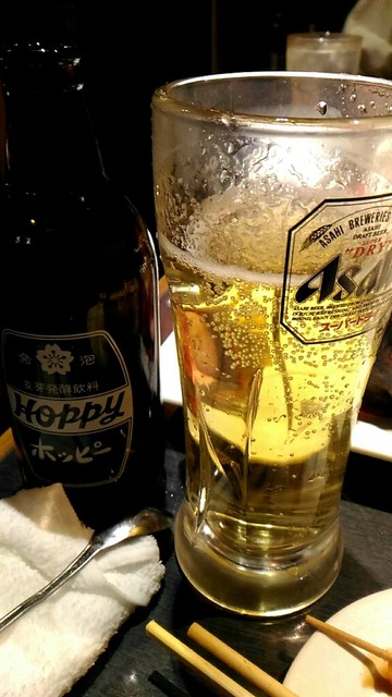 お酒はハイボール、ホッピーセットの順に注文しました。セットの中(焼酎)は氷の有無を選択できます。冬ということで氷なしを選択しました。氷の有無を選択出来るのは珍しい気がします。